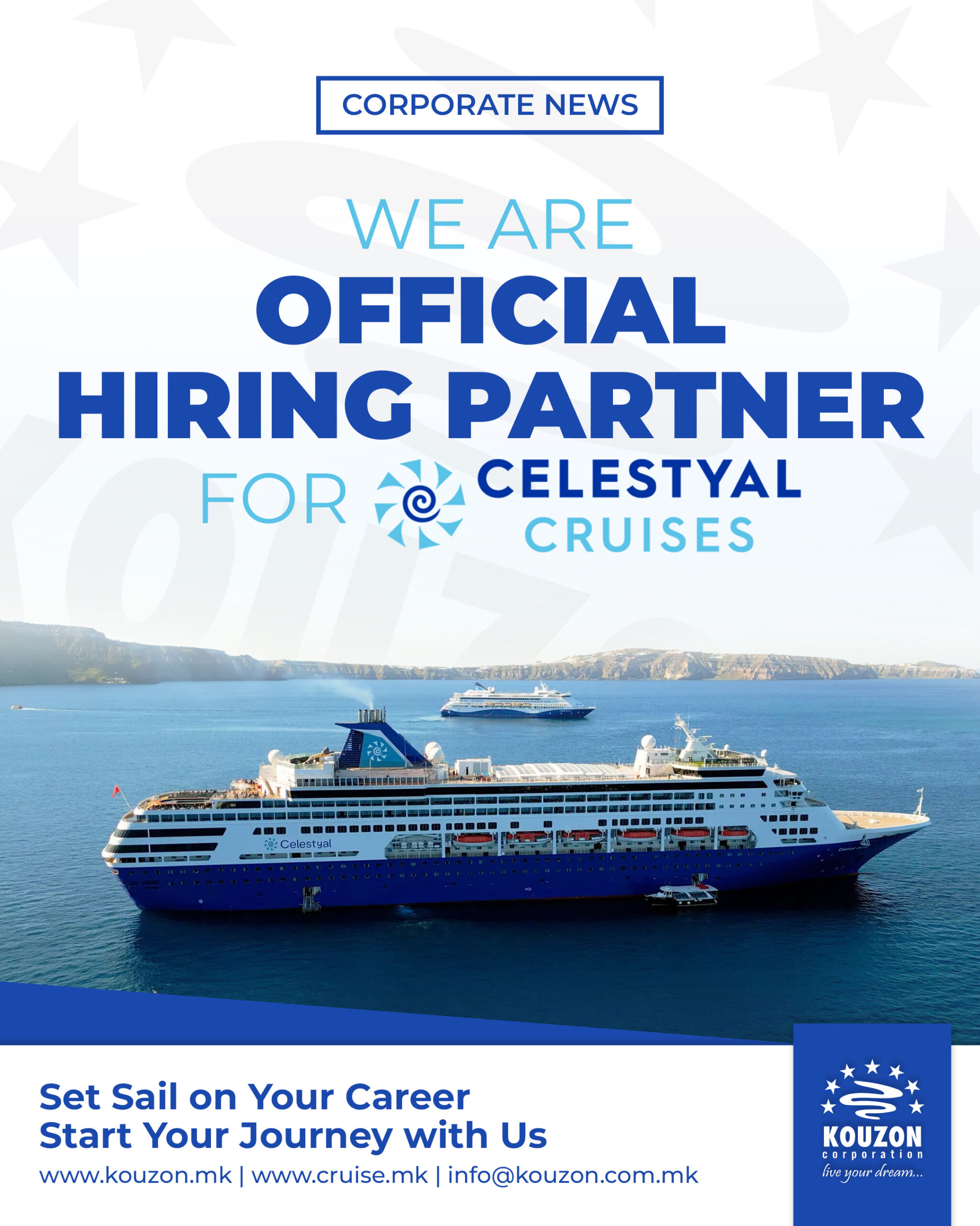 EXCITING NEWS FROM KOUZON CORPORATION! 🚨 We are thrilled to officially announce a major milestone: Kouzon Corporation is now the OFFICIAL HIRING PARTNER for Celestyal